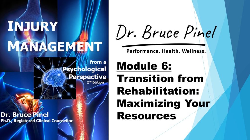 This 6-part webinar series – Injury Management from a Psychological Perspective – provides concepts, tools, and strategies to address the challenges of managing a musculoskeletal injury. The webinar series is supported by a downloadable pdf workbook with activity worksheets that allow individuals to create a personal mental performance program towards achieving successful, positive, and sustainable outcomes relating to work, daily living, leisure & hobbies, wellness, and social interactions.